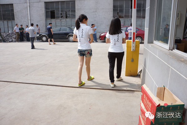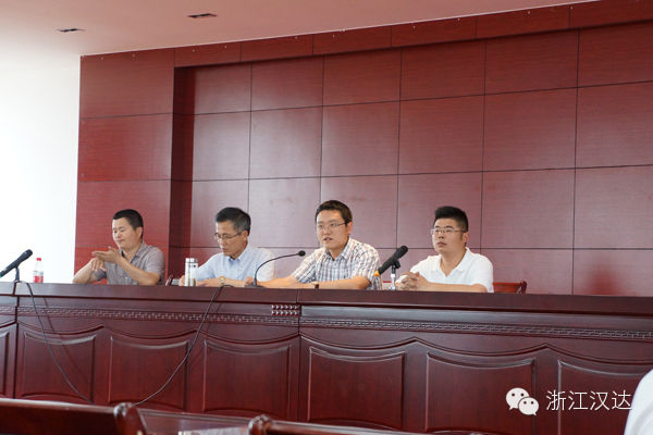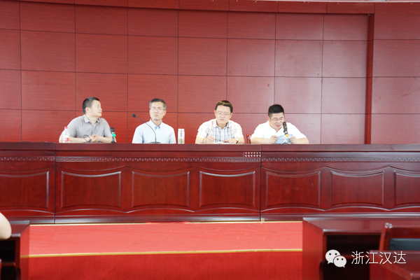 九點整,縣安監局各企業陸續到達浙江漢達,一時間竟造成交通擁堵。公司趕緊派了行政部兩大帥哥在路口指揮交通,臨時從營銷中心“借用”的兩位美女則在門口協助引導,并及時送上礦泉水。