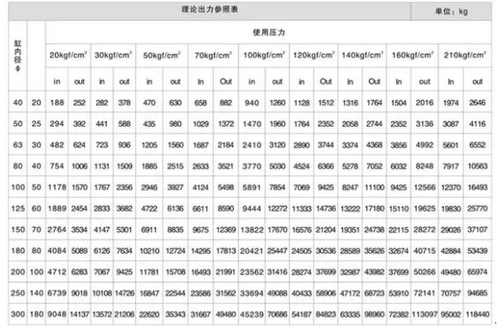 由力的計算公式可知: F = PS(P:壓強; S:受壓面積—由油缸的缸徑、桿徑決定)